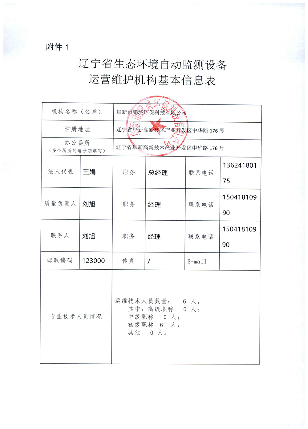(一)遼寧省生態(tài)環(huán)境自動(dòng)監(jiān)測(cè)設(shè)備運(yùn)營(yíng)維護(hù)機(jī)構(gòu)基本信息表